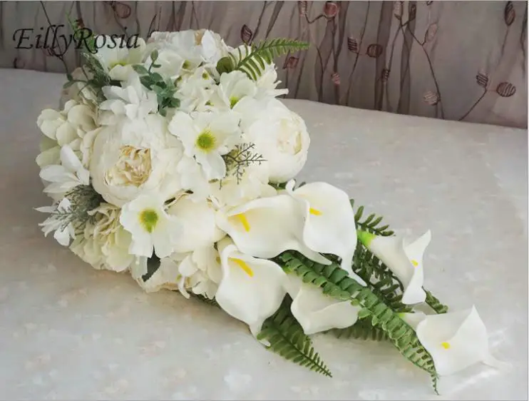 This diy has everything you need to make a gorgeous cascading wedding bouquet using realistic artificial flowers. How do you find out what kind (and colors) of flowers are in season during your wedding month? The voluptuousness of the bouquet is often the main feature of the wedding costume. Now, you may associate cascade (or waterfall or trailing, whatever you want to call them) bouquets with the '80s and early '90s, princess diana style. Roses are a common option for a wedding bouquet, especially white or red roses.